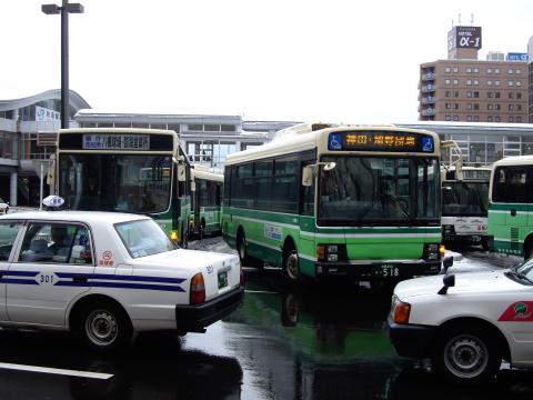 駅前にたむろするバスはみんな緑色の中央交通。市営バスの姿が消えたのは何時まで経っても違和感が。