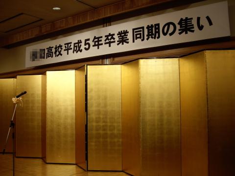 ここまでの恥辱を纏め上げると、そろそろ会場へ。宴会場のどこかだろうと適当に向かったのだけど「○○中学校平成×年同窓会」「××中学校平成○年同窓会」がずらりと並ぶ。さて、うちのは何処だ?
