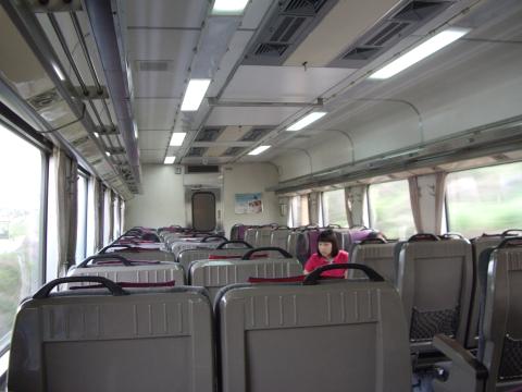 沿線に見える立派な道路を尻目に、列車の速度はなかなか上がらない。時折車掌が車内を巡回する。デッキの前のドアで閑散とした車内に向かい、丁寧に深々と頭を下げる様子が印象的。