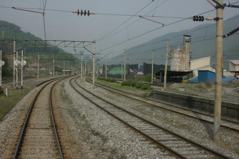時々現れる駅はどこも大きな構内を有し、たくさんの貨車が滞留している。あるいはセメント工場があったりして。昨日忠北線で見かけた貨物列車の出発地なのだろう。