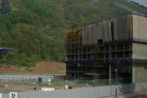 最初の駅で見かけた景色。住宅建設中。どんな田舎でも高層マンションみたいな住宅を建てちゃうところが韓国の不思議な所。どんな人が住むんだろうなぁと謎を残しつつ、