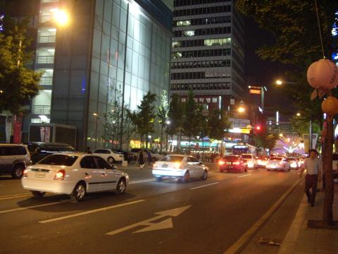 さすがに21時を過ぎただけあって日がとっぷり暮れていました。この辺り、先ほどの乗車っぷりが示すとおり、大邱の中心である様子。