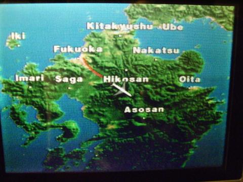 新聞と毛布を受け取る。休刊日なのでスポーツ紙。福岡版だ。19:55、Pushbuck。19:59、Taxing。この時間の福岡は空いている様子。空いてさえいれば動き出してからが早い。モニタに誘導灯が眩く映り、20:02、Takeoff、RWy16。