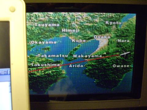 今日はおかきでした。飛行機は既に大阪の北側。さらに西へと向かいます。こちらは恥辱に一応は、集中。