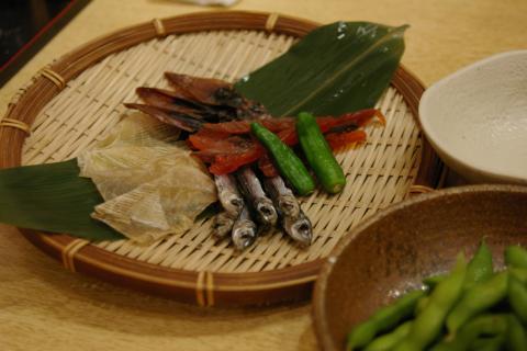 自分で炙って食べる炙りもの盛り合わせは楽しいけど、あまりゆっくりやっていると火が消えてしまいます。