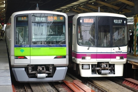 左 10-450F各停 調布ゆき 右 8809F 準特急 京王八王子ゆき